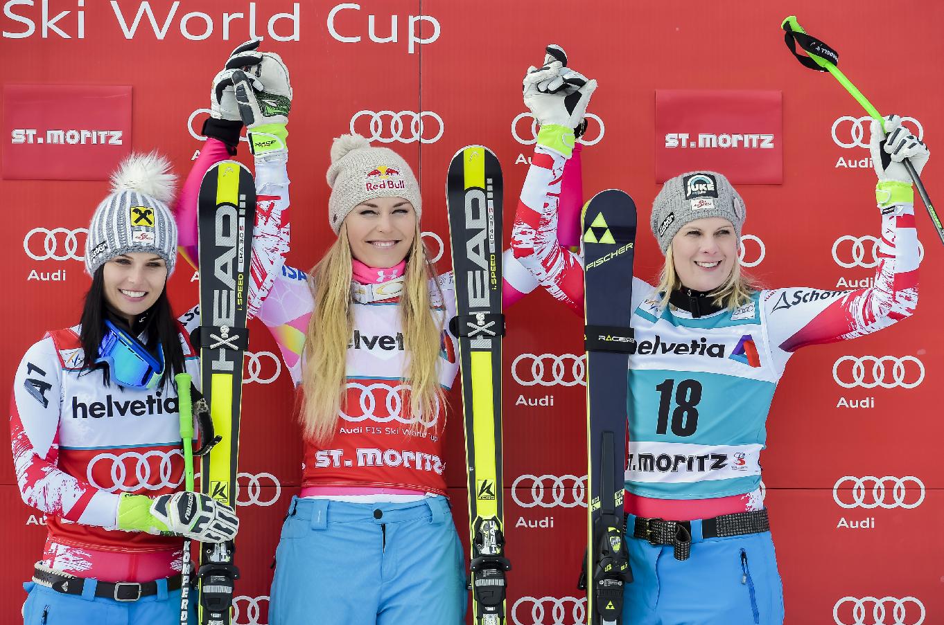 Lindsey Vonn mastered a tricky super-G race on Sunday for a record-extending 64th World Cup victory. The American star raced down the Engadina course in 1 minute, 23.55 seconds. Anna Fenninger of Austria was runner-up for a seventh time this season, 0.24 back. Nicole Hosp of Austria was 1.10 behind Vonn in third.