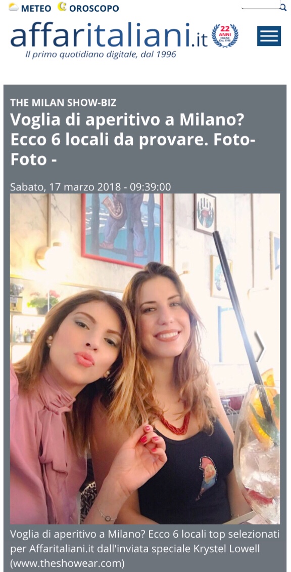 marzo 19, 2018 6 places in Milan for Happy Hours #affaritaliani http://www.affaritaliani.it/milano/milan-show-biz/ape-a-milano-ecco-6-locali-top-da-provare.html Condividi: Fai clic per condividere su X (Si apre in una nuova finestra) X Fai clic qui per condividere su Pinterest (Si apre in una nuova finestra) Pinterest Fai clic per inviare un link a un amico via e-mail (Si apre in una nuova finestra) E-mail Mi piace Caricamento... Correlati