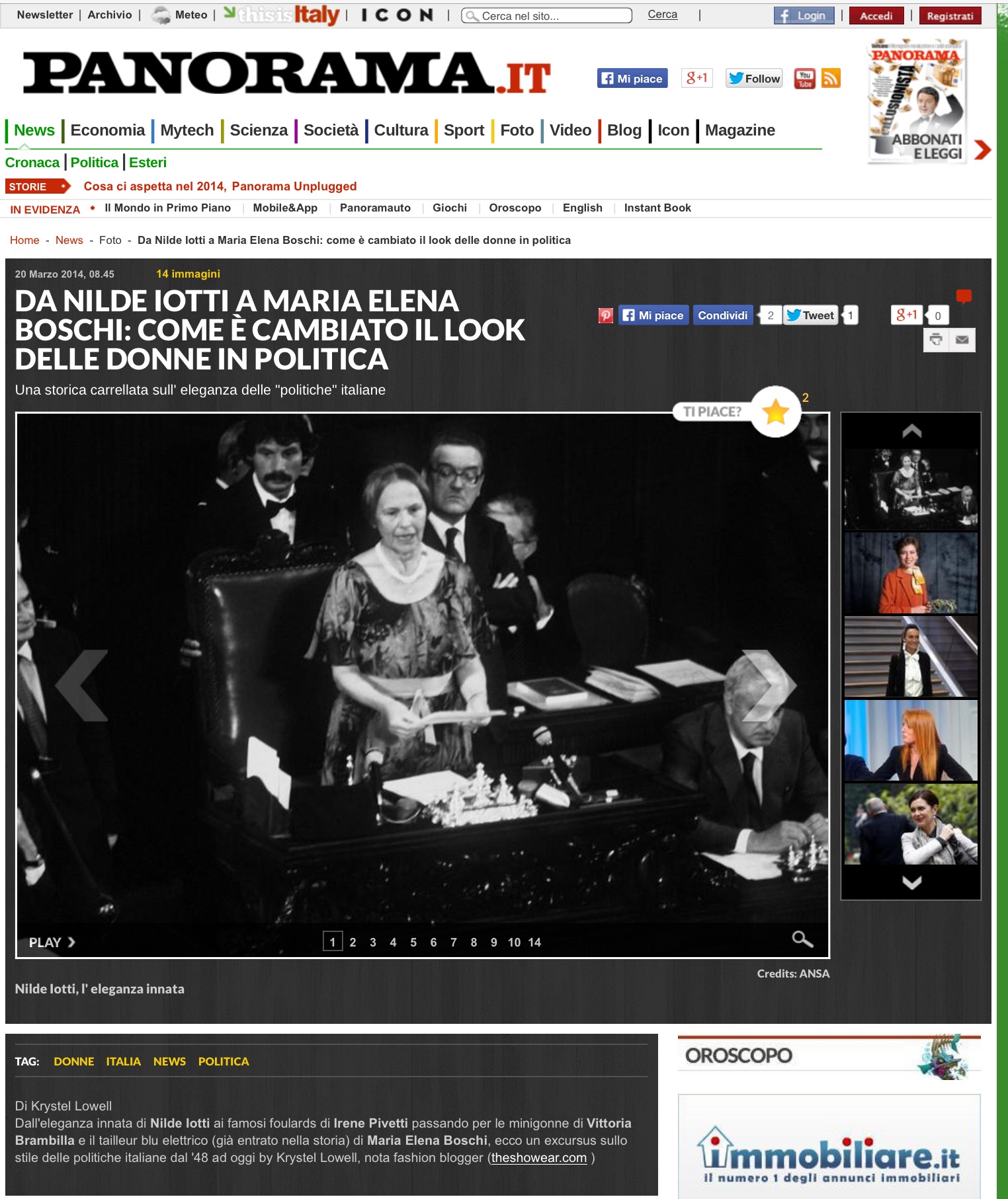 marzo 21, 2014 Da Nilde Iotti a Maria Elena Boschi:come è cambiato il look delle donne in politica.Il mio articolo su Panorama! http://news.panorama.it/foto/Eleganza-Politica